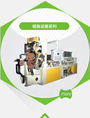 鋼桶的桶身生產設備是指鋼桶的中段生產設備,即從桶身板料開始,包括卷圓、縫焊、板邊、滾筋、波紋成形、卷封組合等。我們自主開發的鋼桶立式生產線,主要包括WD-M101型鋼桶高速全自動縫焊機、VDF-M103型自動立式桶身成型機、VTS-M103型自動立式桶蓋卷封機、VBS-M102型自動立式桶底蓋卷封機、DTS-M104型自動翻桶機。
